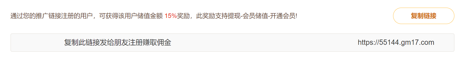 打开官网注册进入个人管理后台首页即可看到推广链接